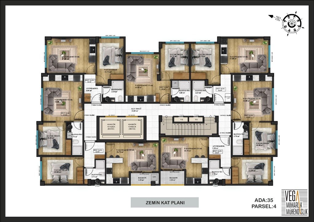 Предлагаем квартиры 1+1, площадью 50 м2.