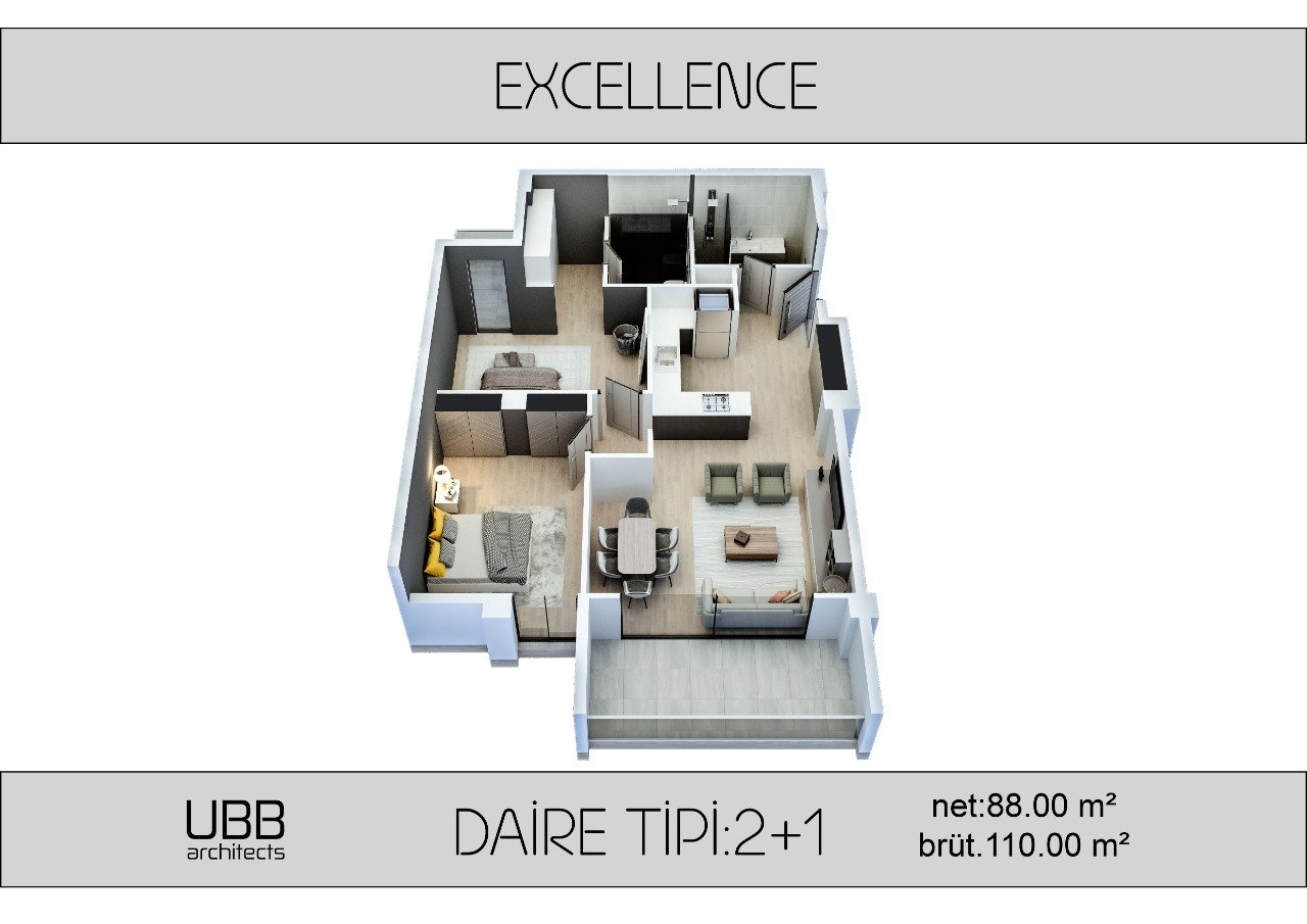 Мы предлагаем квартиры формата 1+1 и 2+1, идеально подходящие как для постоянного проживания, так и для отдыха. Каждая квартира спроектирована с учетом современных стандартов и предлагает уютную атмосферу для жизни.