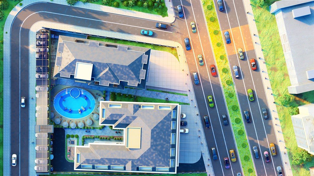 Комплекс состоит из 2 блоков, 46 квартир на земельном участке площадью 3120 м² и имеет очень удачное расположение.