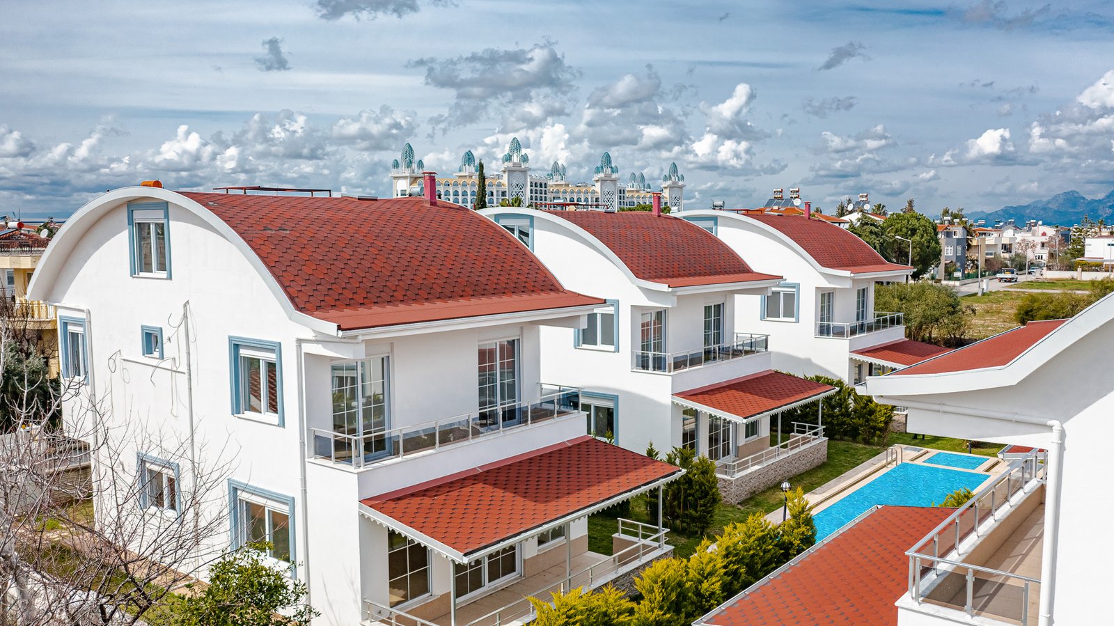 Готовые к заселению трехуровневые виллы в комплексе в районе Анталии, Белек. Комплекс расположен в непосредственной близости к пляжным и гольф клубам, продуктовым магазинам и центру Белека.
