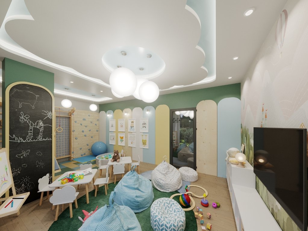 - Детская игровая площадка и зеленая зона.